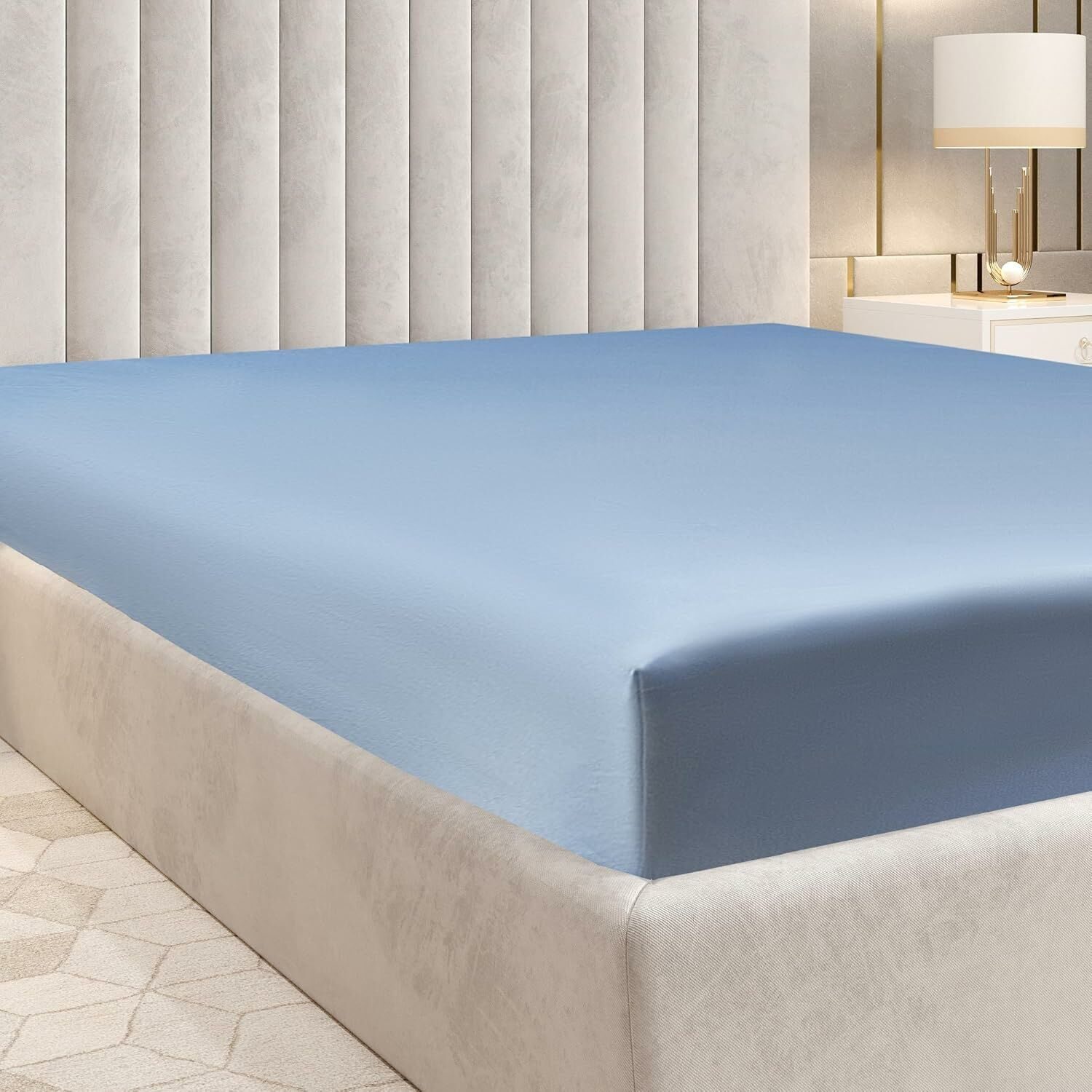 Home/Home/Pure 100% Cotton Sateen Fitted Linen Bed Sheet Twin Size - Cloud Soft Linen - Universal Elastic Deep Pocket - Wrinkle Free -Easy Fit (Blue Bedding), 1200 Thread