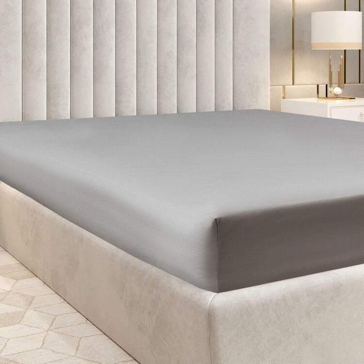 Home/Home/Pure 100% Cotton Sateen Linen Sheet Queen Size - Cloud Soft Linen - Universal Elastic Deep Pockets Queen Sheet - Easy Fit (Light Gray Bedding), 1200 Thread